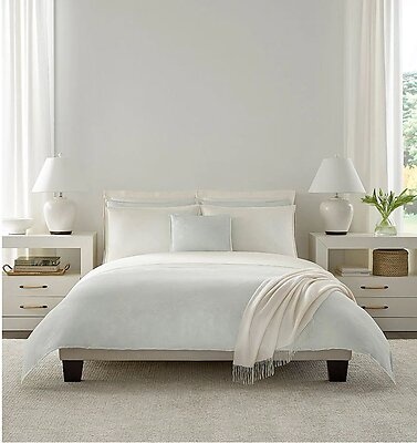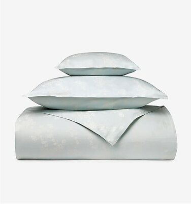 Immerse in Tranquility: Experience the tranquility of a springtime oasis with the Sferra Salara Duvet Covers and Bed Shams. Crafted in Italy from luxurious 100% long-staple cotton, Salara's aquamarine blue hue serves as a serene backdrop for its delicate yarn-dyed sateen jacquard weave.