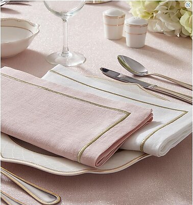 Set the table with the Sferra Seaton napkins and transform ordinary meals into splendid dining experiences. The golden or silver embroidery against the rich background colors not only adds a touch of opulence but also invites a sense of celebration to your table setting. Whether you're coordinating with the neutral elegance of Flint grey or the delicate charm of Petal pink, the Seaton collection offers versatility to match any decor. Perfect for special occasions or everyday elegance, these napkins serve as a testament to your impeccable taste and a commitment to quality. Embrace the allure of linen and let the Sferra Seaton collection elevate your dining to an art form.