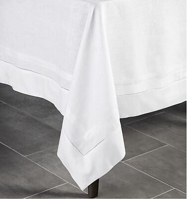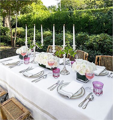 Introducing the Sferra Tipton tablecloths and napkins, where the beloved purity of white linen meets the subtle sophistication of a cotton sateen applique border. Crafted with the utmost care in Lithuania, this collection begins with Sferra's renowned Festival linen as its base, offering a canvas of exquisite quality and timeless appeal. The addition of the white sateen applique border introduces a delightful interplay of textures and lines, creating a look that is both visually appealing and pleasing to the touch. The Tipton collection is an emblem of elegant classics reimagined, designed to complement any dining setting with its refined beauty and understated charm.