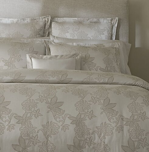 Step into a dreamscape of timeless beauty with Sferra Tivoli Bedding-a collection that feels like poetry in fabric. Crafted in Italy from 100% long-staple cotton, Tivoli features a yarn-dyed jacquard weave that echoes the delicate intricacies of vintage lace. The floral pattern softly dances across a taupe sateen backdrop, exuding warmth, femininity, and quiet sophistication. It's the kind of bedding that makes your space feel like a handwritten love letter.