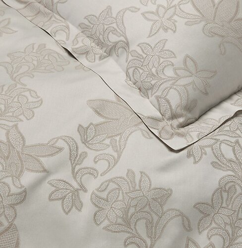 Tivoli bridges eras-offering the vintage charm of a bygone time, paired with today's refined design sensibility. The subtle taupe hue is versatile and calming, creating the perfect canvas for layering. Whether styled in a traditional master suite or a modern guestroom, this romantic floral bedding invites tranquility and elegance into your home. Let Tivoli be your invitation to slow down, reflect, and rest beautifully.
