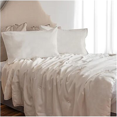St Geneve has upgraded their silk duvet with a luxe new cover: the hand-layered tussah silk filling is now enveloped in a silky-soft 300 thread count lyocell outer shell. Lyocell is smooth, lightweight and supple. It is 50% more breathable than cotton and pairs beautifully with the natural silk fill. Special order, usually ships in 2-4 weeks