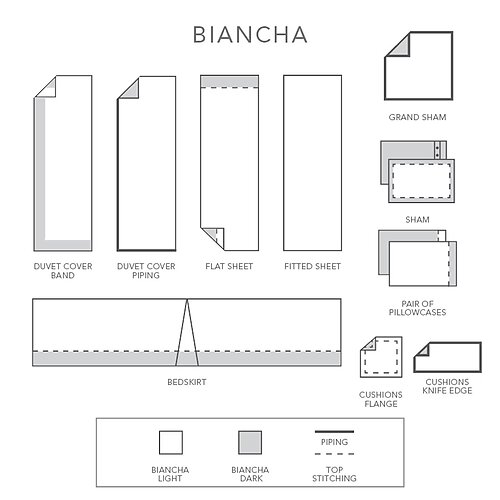 Biancha exudes organic simplicity and grace. The fine sateen weave of contrasting 100% Italian linen threads creates a beautiful drape and a subtle, natural sheen. It also creates a soft heathered look with a dark side and light side, making each piece reversible and very versatile. Finishing details set Biancha apart with generous contrasting cuffs and borders-one side will be dark with light contrasting border/cuffs, and the flip side will be light with dark contrasting borders/cuffs. Super soft linen