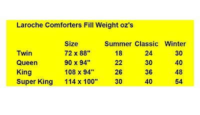 St Geneve's Laroche down comforters are filled with Canadian processed white duck down certified under the Zurguard® system so that the down is hypoallergenic, and will stay lofty and warm for years. This down is a good quality that lofts at 575 cubic inches per ounce. The white ducks are raised to be more mature and larger, so the down is also larger, puffier, and more resilient, which makes this duck down superior to many grades of goose down typically available in department stores. This product is discontinued, please see St Geneve Down for current selections.