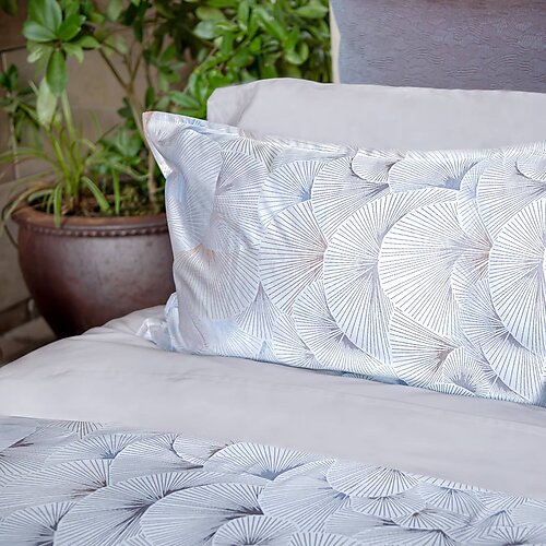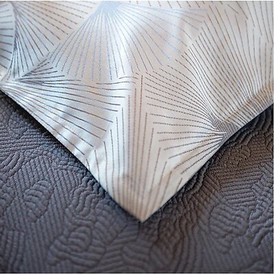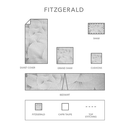 Embrace your inner glam with Fitzgerald's art deco inspired design. Fitzgerald features waves of fan detail in slate, taupe, and caramel on a pewter backdrop. This intricate jacquard pattern is masterfully woven into a luxuriously soft sateen using the finest 100% Giza Egyptian extra-long staple cotton. Fitzgerald delivers the brilliance of the Jazz Age with its luxe modern neutrals, curve detail, and streamlined finishing.
