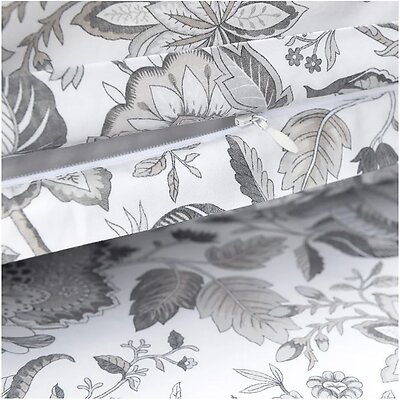 Step into a realm of timeless beauty and classical whimsy with the St Geneve Inesa Floral Bedding. This exquisite design is a love letter to the enchanting world of botanicals, featuring decorative leaves and florals that seem to dance across the fabric. Imagine your bedroom transformed into a serene garden, where the gentle shades of grey and taupe blend seamlessly with your decor, creating a peaceful and inviting atmosphere. The Inesa collection is more than just bedding; it's a gateway to a tranquil world, where nature's grace is captured in every thread. Special order, usually ships in 3-5 weeks. Duvet covers and shams have 1" flanges and zipper closure.