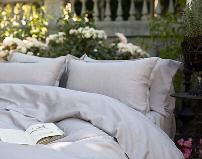 St. Geneve Lanoso is a soft, light weight wool and cotton blend sheet and bedding fabric that is woven in Italy from 60% wool and 40% extra long staple cotton. The wool gives it a light body and warmth while the cotton adds strength and durability. Shown here in Dove Grey (no longer available)