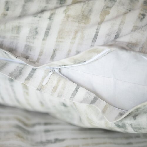 Infuse your space with personality and soul. The St Geneve Nomad Bedding takes inspiration from global travels and free-spirited style, blending vibrant earth tones with modern minimalism. The informal geometric stripe pattern in storm grey and lime rickey pops against a soft, light backdrop-creating a relaxed, lived-in look with a designer edge. It's eye-catching without overwhelming, ideal for effortlessly eclectic bedrooms with a contemporary twist. Made in Portugal. Special order, usually ships in 4-6 weeks.