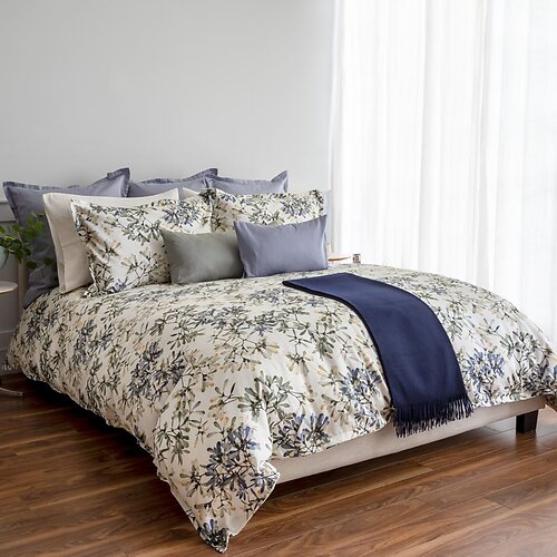 Let your bedroom blossom with the St Geneve Paloma Bedding-a contemporary floral escape printed on luxurious cotton sateen. With an artful arrangement of watercolor botanicals in indigo, amber, hunter green, and pine, Paloma turns your bed into a serene yet vibrant centerpiece. Its cloud-like backdrop makes each botanical element pop, giving your space a fresh, gallery-worthy feel that celebrates color and movement. Made in Portugal. Special order, usually ships in 4-6 weeks.