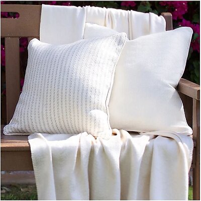 Cushions have a knife edge and hidden zipper and included feather fillers. Texture and Stripes have stripes horizontal in relationship to hidden zipper.