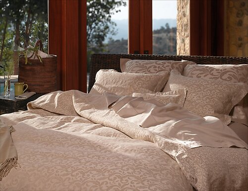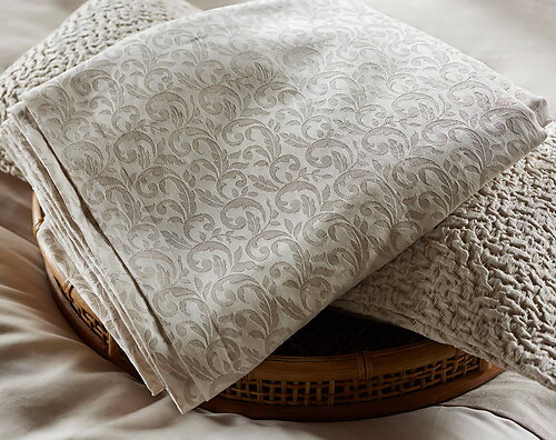 Step into a realm where every detail whispers elegance with The Purists Petite Jasmine Linen Cotton Bedding. Crafted from a divine blend of 45% linen and 55% Egyptian cotton, this collection sets the standard for luxury bedding. The jacquard weave, a testament to intricate craftsmanship, brings the enduring signature pattern of Petite Jasmine to life, offering a texture that is as pleasing to the touch as it is to the eye. Made in Italy, a country renowned for its artisanal excellence, each piece is a work of art, reflecting the SDH philosophy of natural, classic elegance. The clean, quiet grace of the Jasmine pattern, combined with timeless sophistication, has captivated hearts worldwide, making this collection a must-have for those who seek to infuse their bedrooms with a serene and refined ambiance. From the plush duvet covers to the elegant bed sheets, every item promises to transform your sleep into an experience of unparalleled comfort and luxury. While available as sheets and pillowcases, please be aware that this fabric does have a light texture. Check out the Purists Julia or Linen Plus for smoother options.