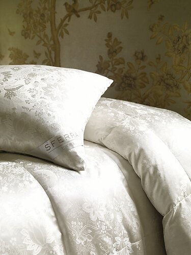 SFERRA takes pride in presenting Utopia Eiderdown comforters and pillows, crafted with precision and care in the USA. This commitment to domestic craftsmanship ensures that every piece meets the highest standards of quality, contributing to the legacy of SFERRA's renowned luxury.