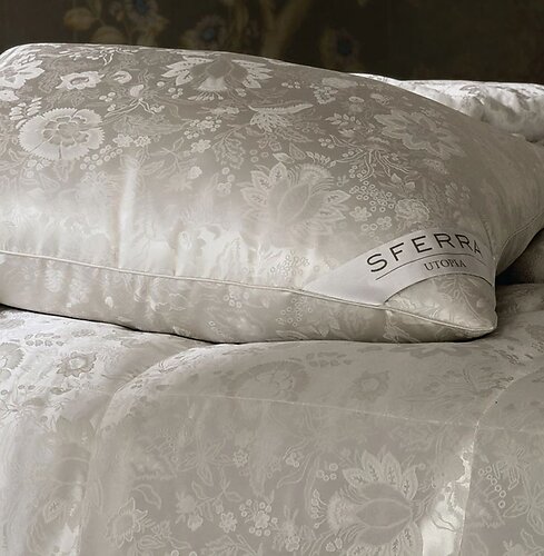 Utopia Eiderdown comforters and pillows elevate the concept of luxury bedding. Encased in pure German Silk Jacquard ticking, each piece is a testament to refinement and opulence. The 434-thread-count ticking not only adds to the visual allure but enhances the overall tactile experience.