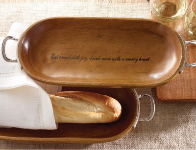 Wooden Bread Bowl with Pewter Silver Metal Handles?