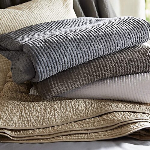 This lightweight striped textured bedding fabric has a beautiful rustic feel and elegant texture.