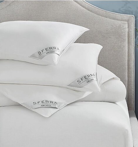 SFERRA's Arcadia down alternative pillows are sheathed in smooth 330 thread count all-cotton sateen with double-stitched piping, all in pristine White. To dream upon.