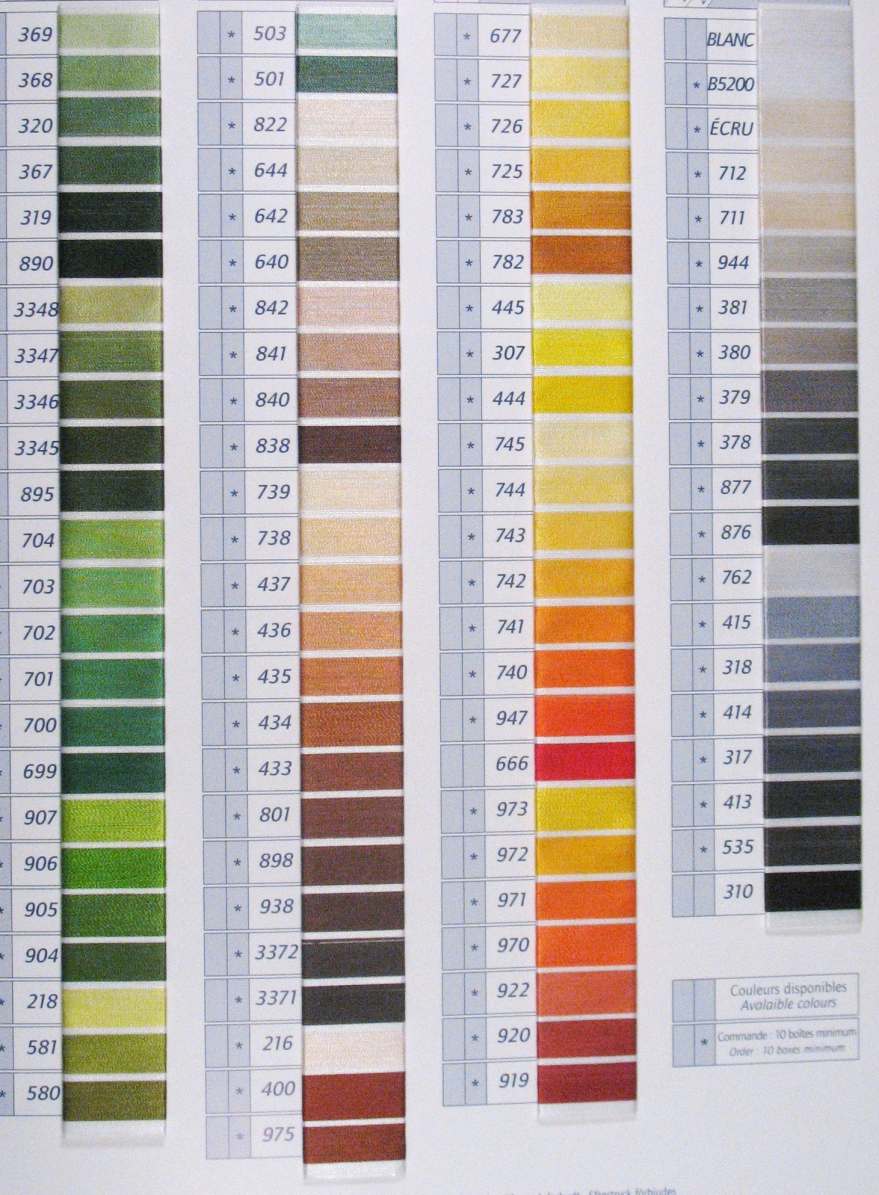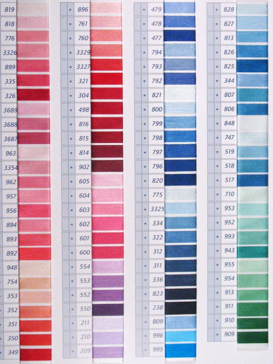 These 2 images are scans of the DMC color chart. These colors are available as monogram colors for Sferra products, however similar colors are available for Matouk products, so if you can find a color you like here, chances are good that Matouk will have a similar color since the color book that Matouk works with has over 1000 colors. Since colors can display differently due to differences in monitor color settings, lighting, as well as the color variations between a scan and the original threads, we recommend ordering a color chart with actual thread samples. Please contact us for ordering information for Matouk and Sferra thread charts.