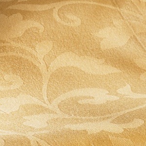 A: SFERRA produces two different styles of easy-care table linens: Both of these styles are yarn-dyed woven jacquards, using ring-spun polyester yarns. Polyester is a man-made, synthetic fiber. There are two types of polyester yarns - open end and ring-spun. Each start with the same fiber strands. However, producing open end yarns is faster and less expensive, while producing ring-spun yarns is more expensive and takes up to five times longer. In the ring-spun process, the yarn is made by continuously twisting and thinning the strands. This twisting results in a stronger yarn with a significantly softer hand.
